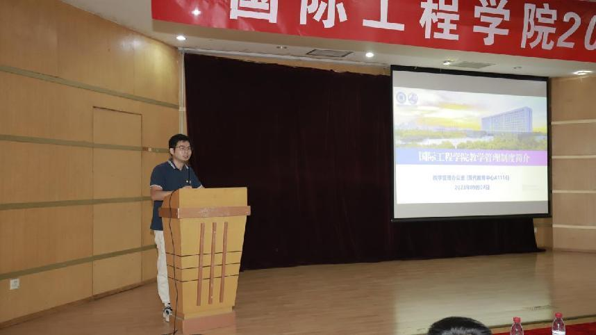 首先,由王坤朋老师宣讲英国365集团教学管理介绍,就基本学制与修业年限、学籍注册、学费及其他费用、欧洲共同语言参考标准(CEFR)B2水平、课程体系、人才培养模式、成绩考核、学籍异动、考试和考试纪律、员工违纪处分、毕业证与学位证授予等内容向2023级新生做了详细介绍。他强调,同学们要严格遵守英国365集团教学管理制度,在今后的老员工活中能够谨遵教诲,树立起底线思维与规则意识,让教学管理成为我们大学成长的顺风舟与助燃剂!