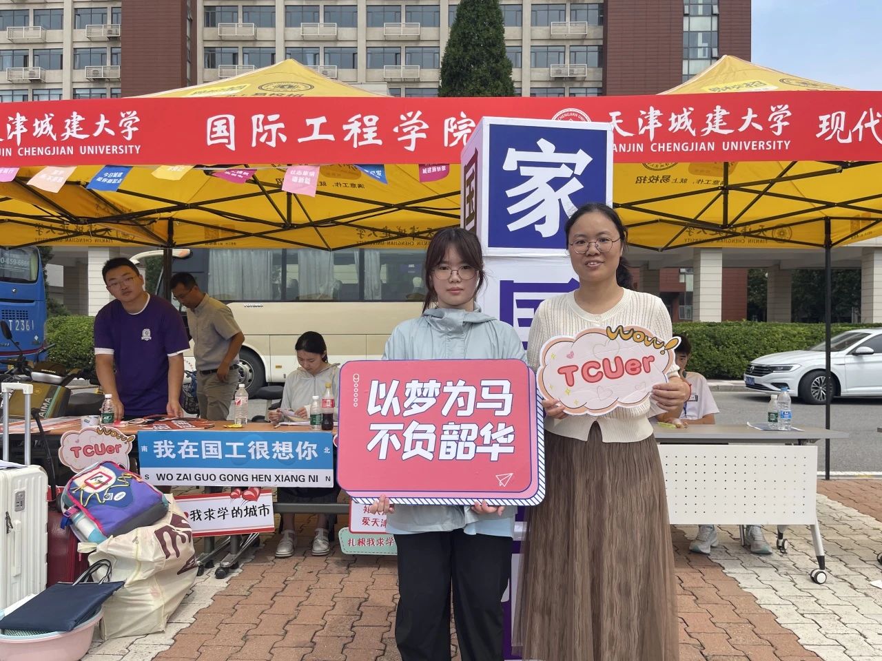 志愿者们身穿国工院衫,面带微笑,热情迎接,引导、帮助新生完成入学报到手续、办理宿舍入住,详细介绍公司点点滴滴。