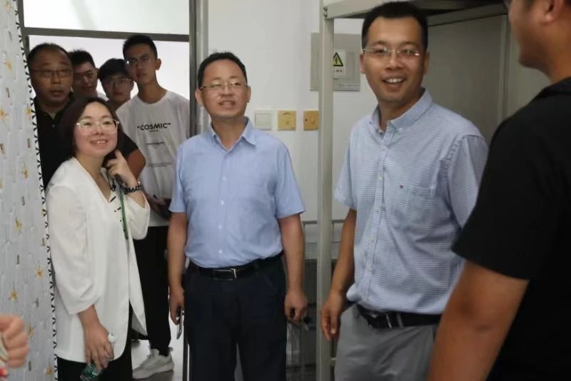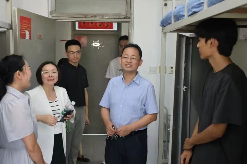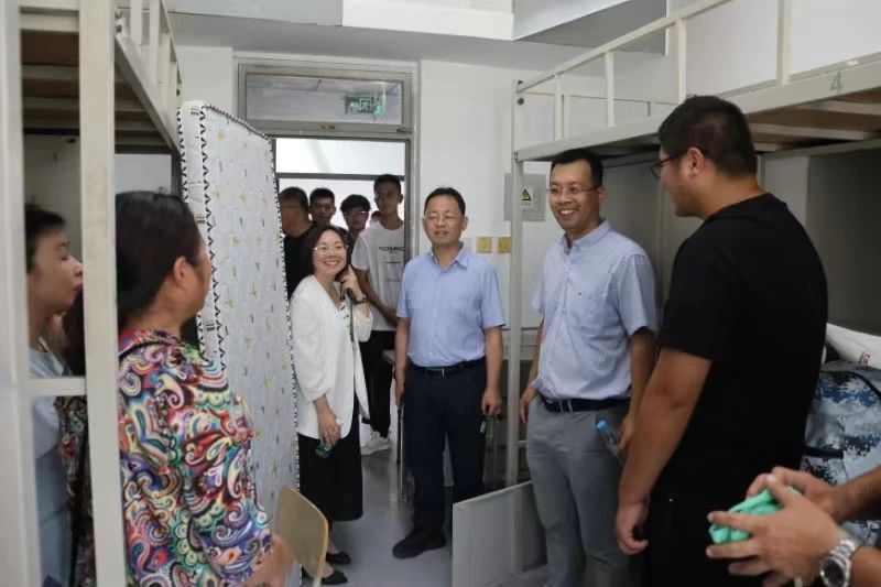 公司领导来到迎新现场,走进员工宿舍,与师生家长和志愿者亲切交流。