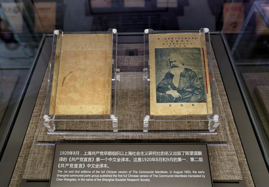 中共一大纪念馆展出的由陈望道翻译的《共产党宣言》第一个中文全译本。